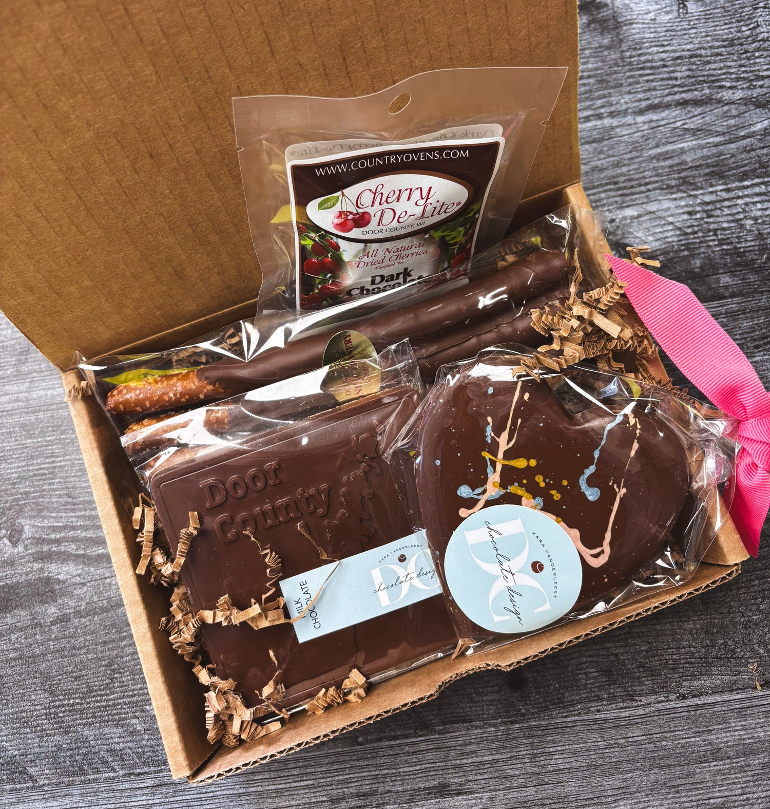 Spread Valentine’s Day joy with this special box full of love, chocolate and Door County dreams. From hand-painted chocolate hearts to handcrafted chocolate pretzel rods, this box is sure to make this upcoming Valentine’s Day a memorable one.